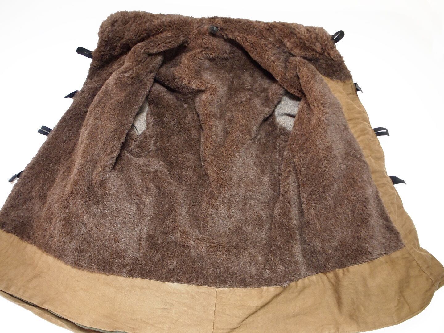 一目見て極寒地に耐えれるタフな作りだということが分かりますがブラウンカーキの丈夫でやや艶のあるコットンサテン地のシェルにアルパカライナーで防寒性に優れています。