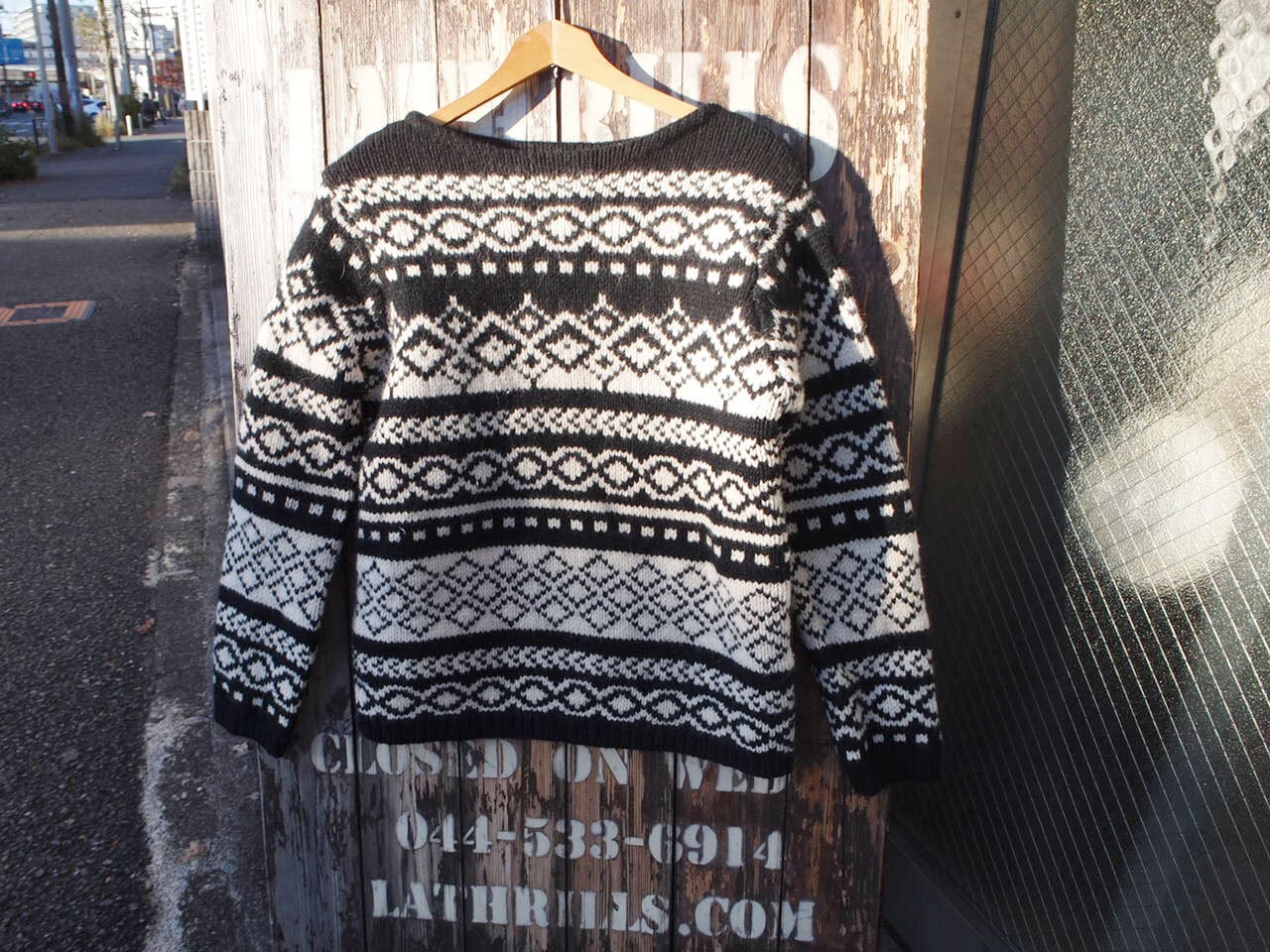 ■商品説明:エディバウアーの総柄ニット。モノトーンのノルディック柄で柔らかなラムウールの1着。
