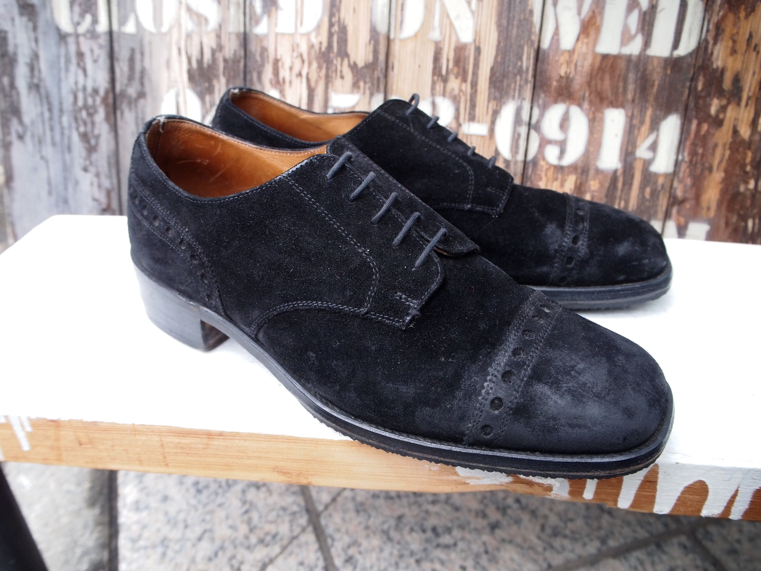 80s Vintage 【Alan McAfee】 アランマカフィー 旧チャーチ スウェード ドレスシューズ パンチドキャップトゥ 黒 UK-9~9 1/2相当 (27.5~28cm)