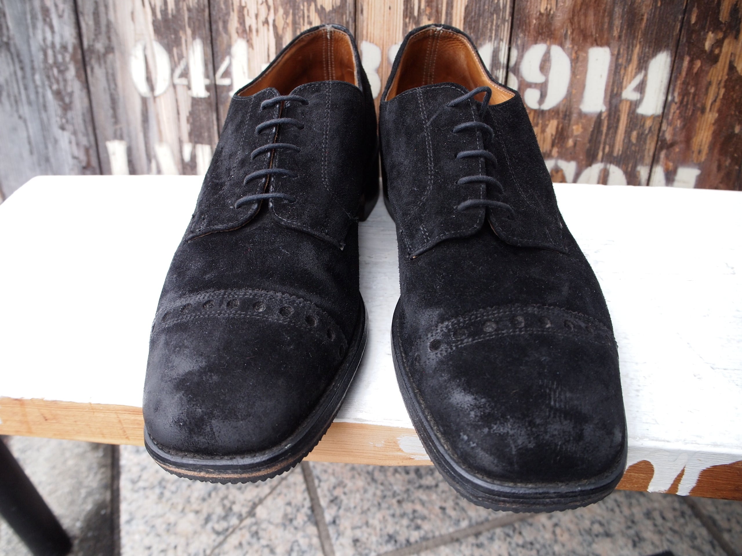■ブランド・モデル名・生産国:80s Vintage Alan McAfee アランマカフィー 旧チャーチ スウェード ドレスシューズ パンチドキャップトゥ 黒 UK-9~9 1/2相当 (27.5~28cm) Made in England