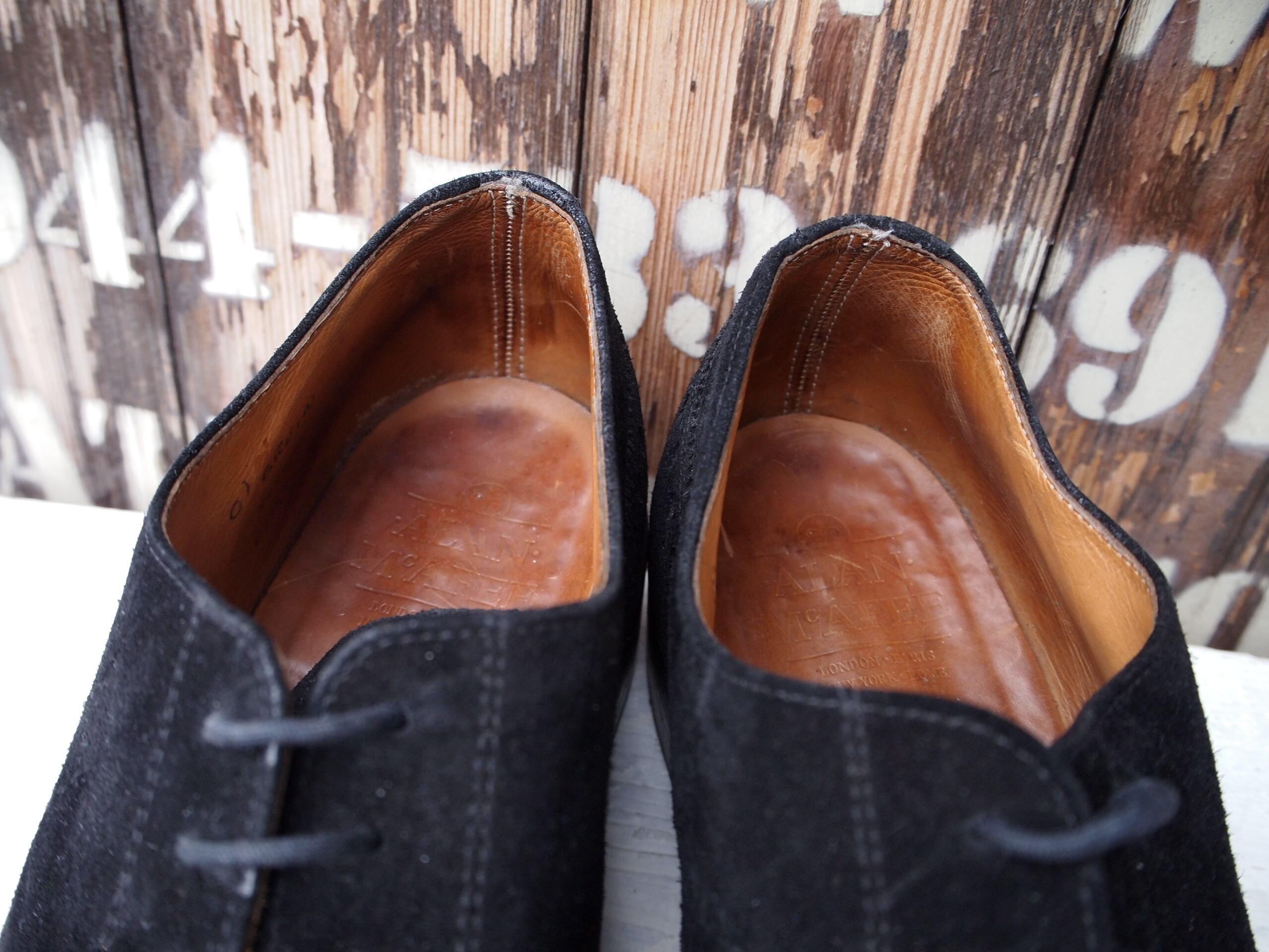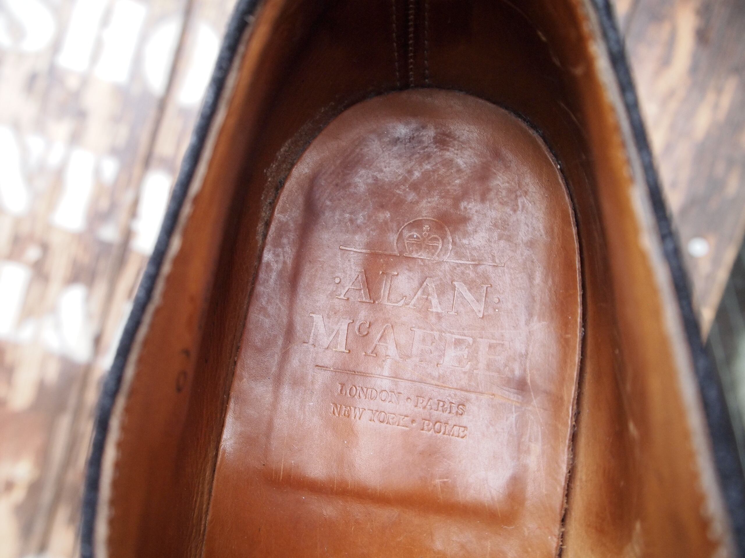 ■コメント:Alan McAfee(アランマカフィー)は1848年にビスポークブランドとして創業し、1960年~70年代にかけては主にChurch'sのOEM生産でアメリカ各地のメンズショップ向けに輸出され80年代に入りChurch'sに吸収。最高級ラインとして存在し消滅したブランドです。高品質でオリジナリティ溢れるデザインでも愛され続けている幻のシューズメーカーです。こちらは80年代頃に製造されたスクエアトゥにパンチドキャップトゥのブラックスウェードのクラシックなドレスシューズ。