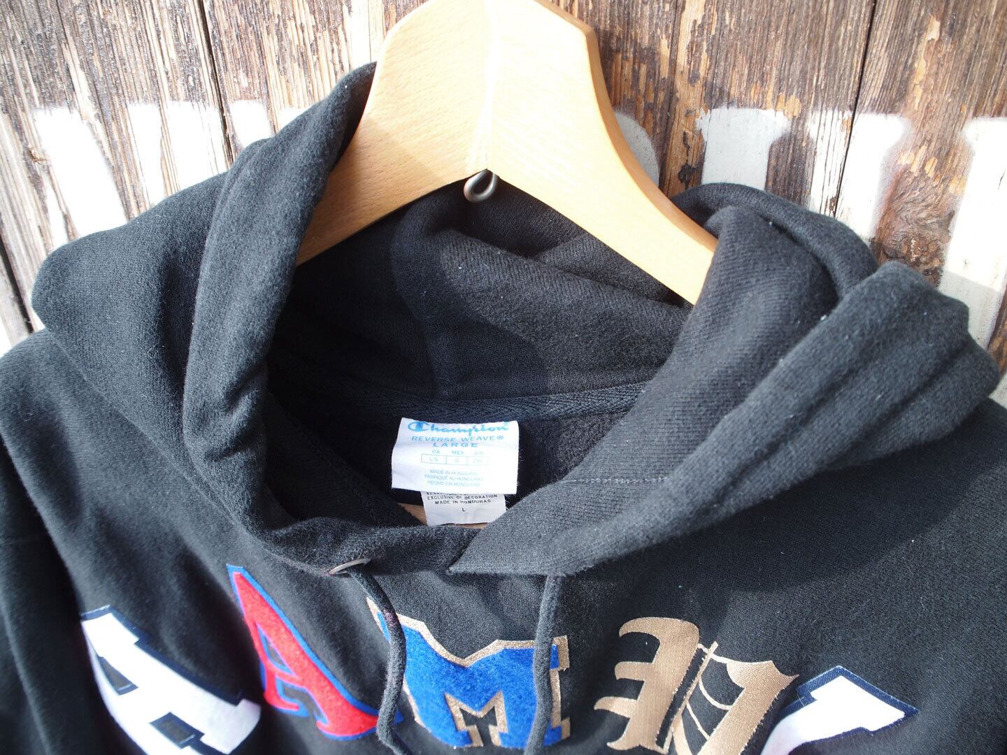 ■ブランド・モデル名・生産国:Champion チャンピオン リバースウィーブ スウェットパーカー 黒 トリコロール シニール パッチ◆Size:US-L Made in Honduras