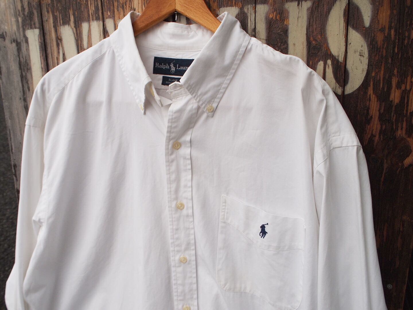 90s【Ralph Lauren】オールド ラルフローレン ブレイク ポケット付き ライトオックスフォード 長袖 ボタンダウンシャツ BLAKE 白 ホワイト US-L