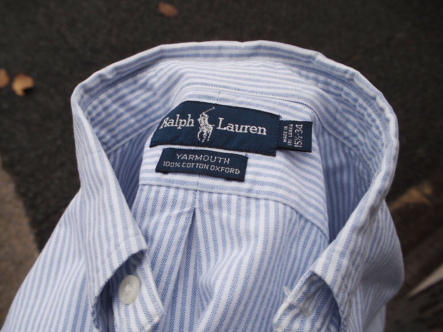■ブランド・モデル名・生産国:90s【Ralph Lauren】オールド ラルフローレン ヤーモス ストライプ オックスフォード 長袖 ボタンダウンシャツ YARMOUTH 白×青 ホワイト×ブルー US-16 1/2-34 35 Made in Sri Lanka