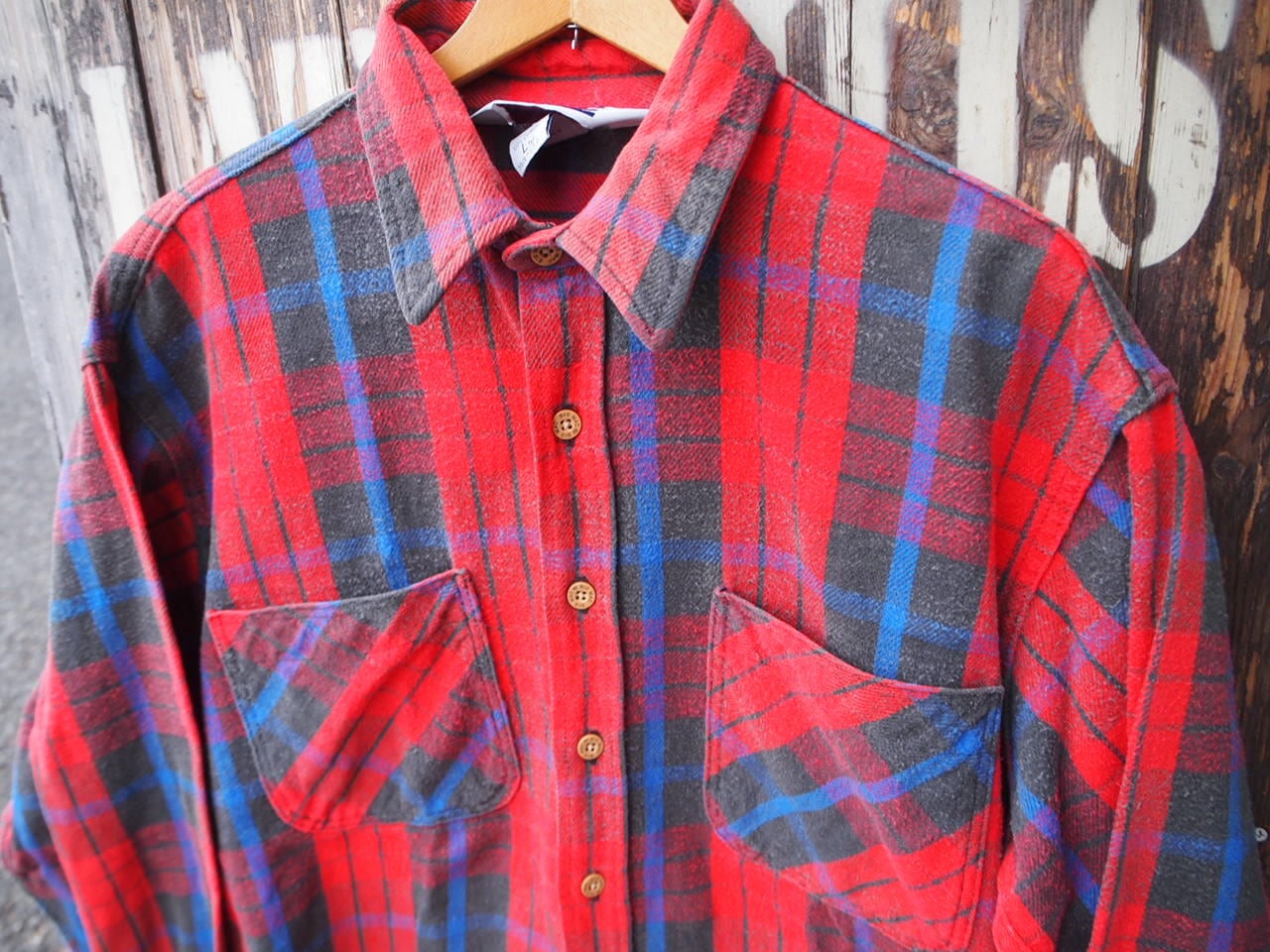 ■商品説明:90s USA製のコットンヘビーネルシャツ。ゆったりとしたサイズ感のフェード感のあるクラシックな配色のチェック柄。