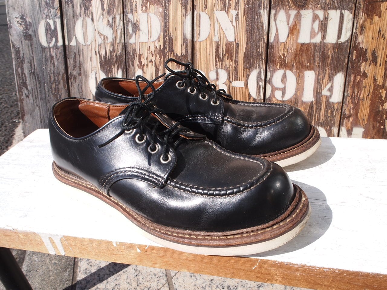 ■コメント:RED WING(レッドウィング)の8106 OXFORDは、ブラックのクロームレザーを使用した黒いオックスフォードシューズです。モックトゥのデザインと、クッション性に優れたトラクショントレッドソールが特徴的です。現在は廃盤モデルとなっており、希少なアイテムです。