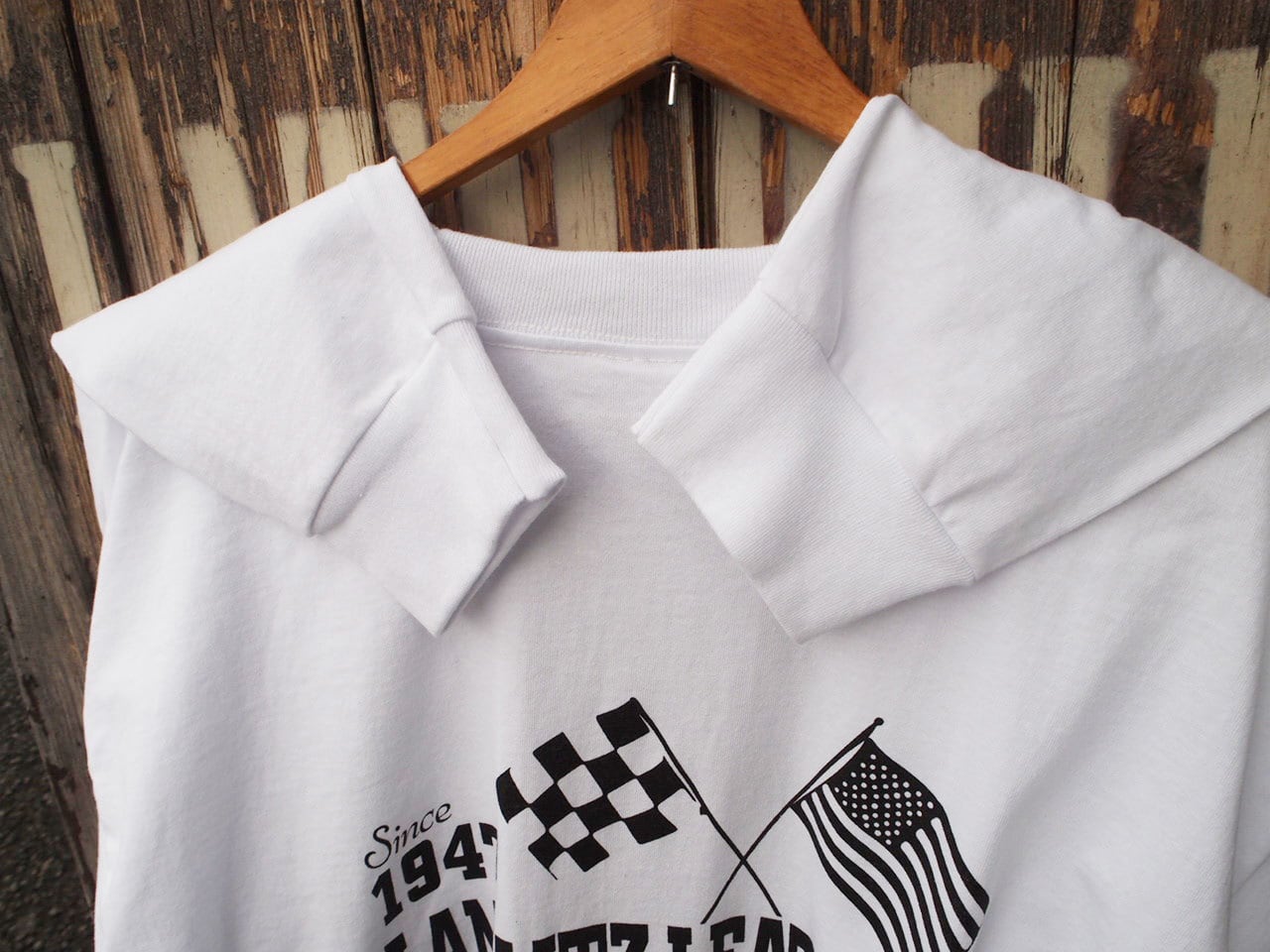 ■ブランド・モデル名・生産国:USA製 Langlitz Leathers ラングリッツレザー Bayside ロゴ プリント ロンT 長袖 Tシャツ 白◆US-XL Made in USA