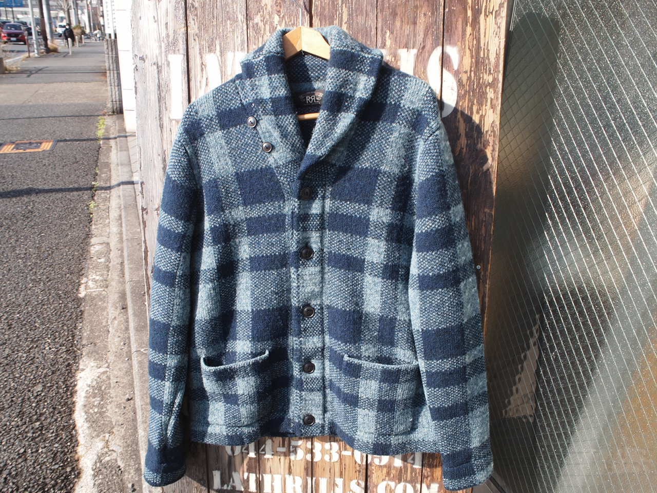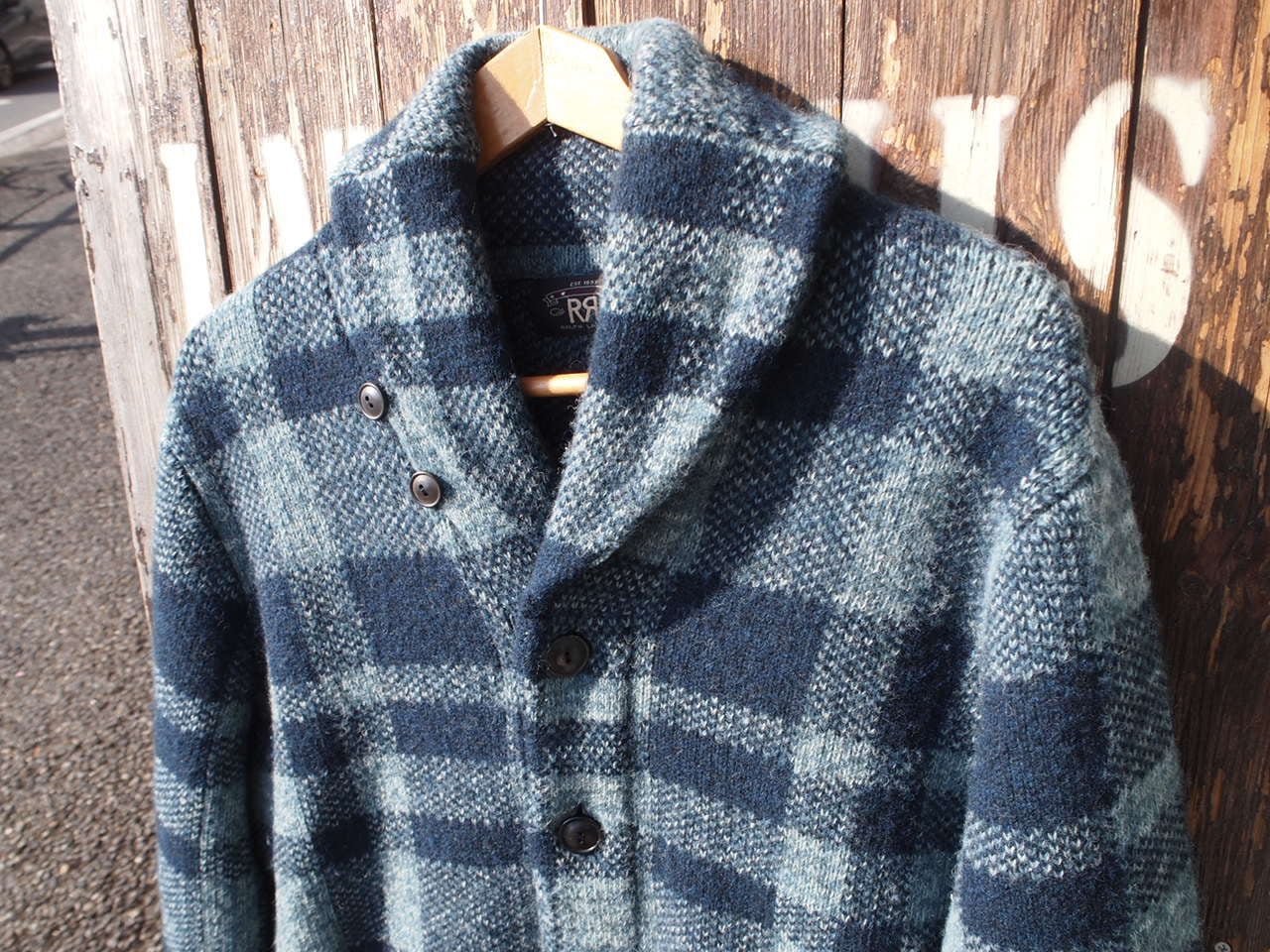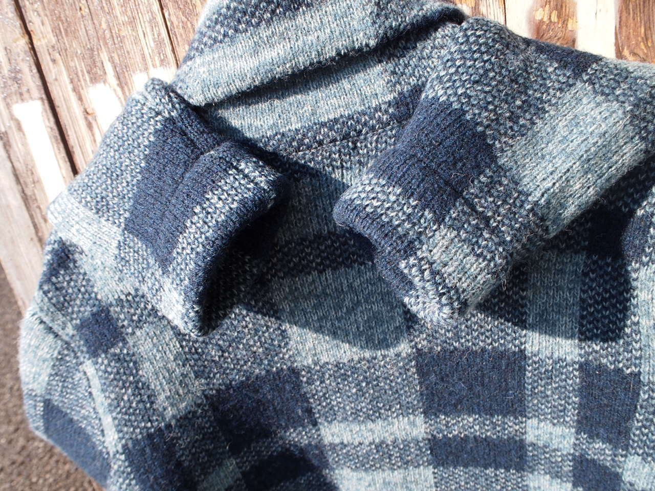 ■ブランド・モデル名・生産国:RRL DOUBLE RL ダブルアールエル インディゴ ブロックチェック ショールカラー ウール ニットジャケット カーディガン US-M Made in China