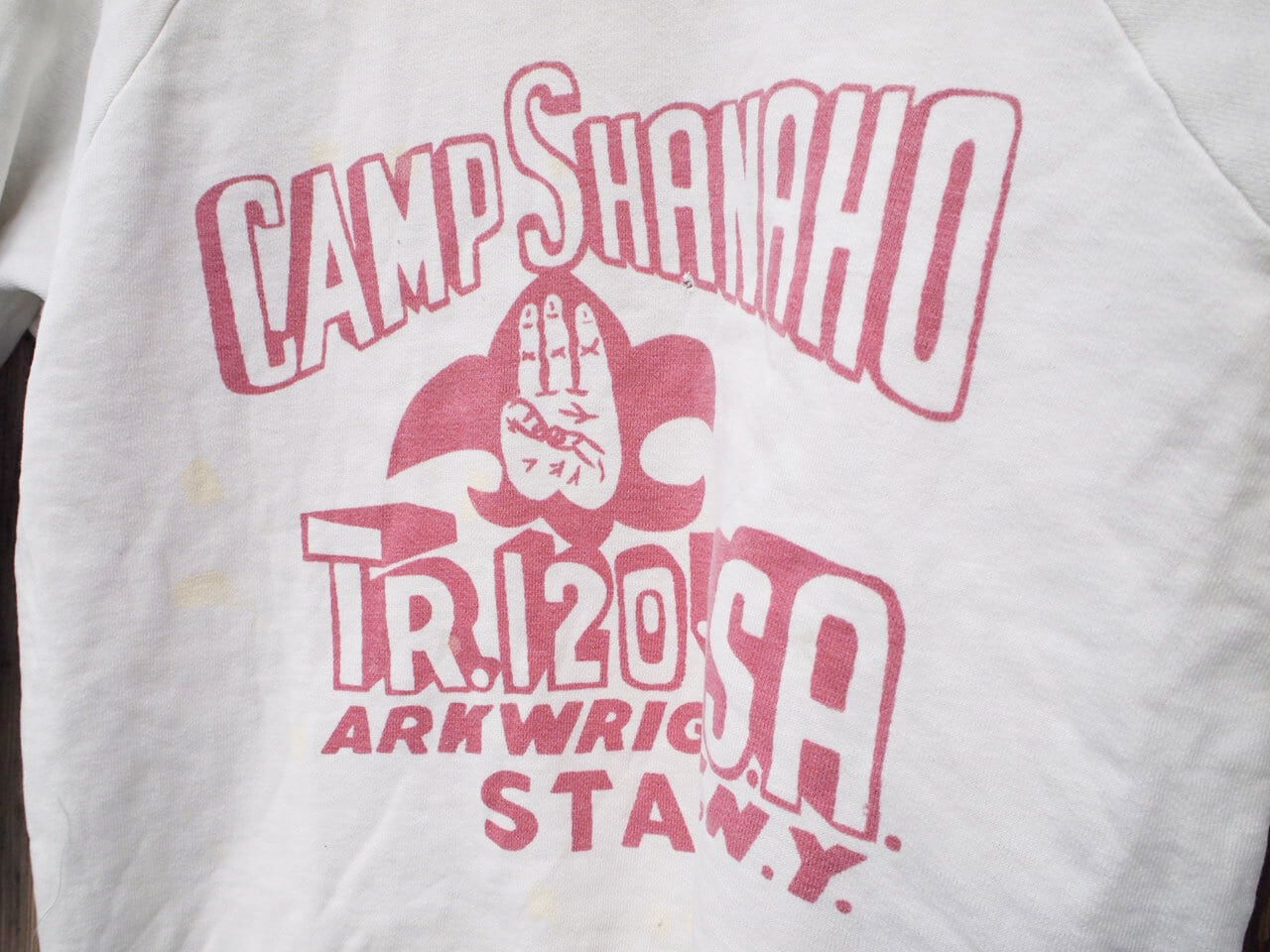 ■ブランド・モデル名・生産国:60's Vintage Hanes Sweat Shirt ビンテージ ラグランスリーブ 染み込みプリント スウェット メンズUS-L (42/44) Made in USA