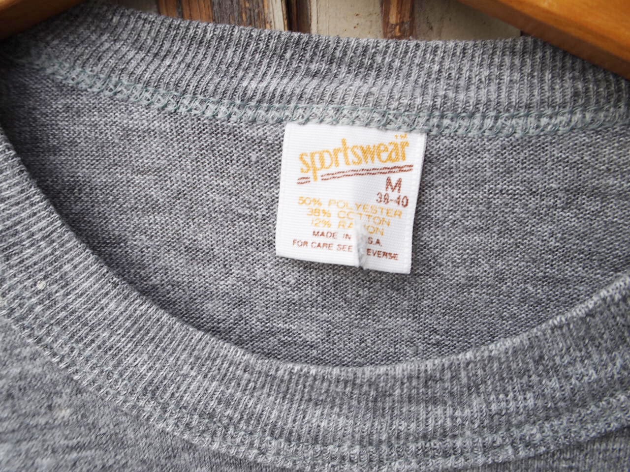 ■ブランド・モデル名・生産国:70s Vintage USA製 Sports wear Riley College ビンテージ オールド 杢グレー 染み込み プリント カレッジ Tシャツ◆Size:US-M Made in USA