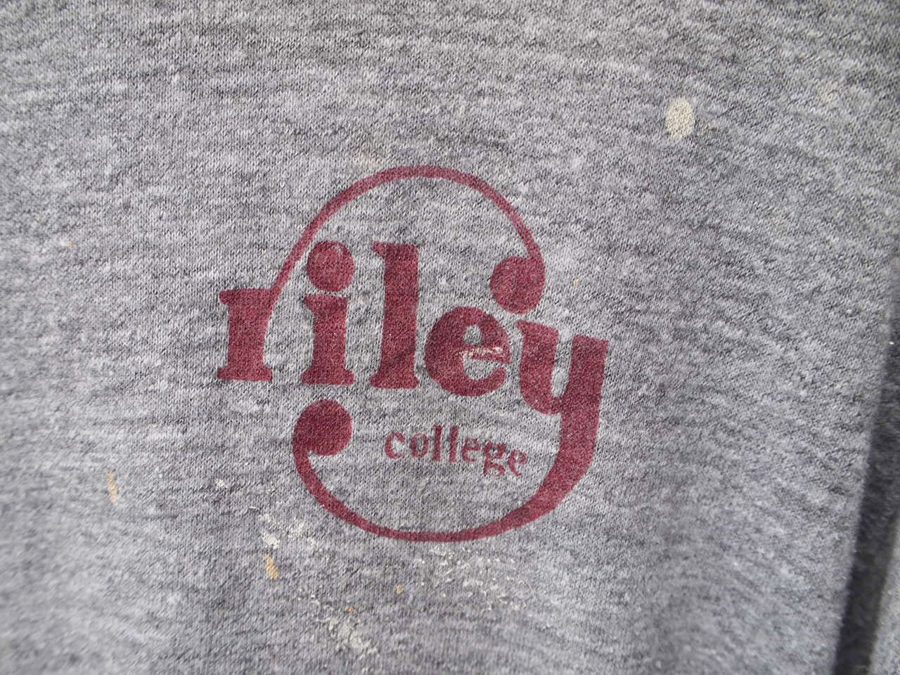 70s Vintage USA製 Sports wear Riley College ビンテージ オールド 杢グレー 染み込み プリント カレッジ Tシャツ◆Size:US-M
